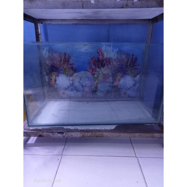 Aquarium ukuran 80x40x40 kaca baru full 6mm sudah diberi alas styrofoam dan gambar wallpaper lokasi 1 :